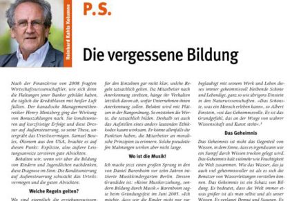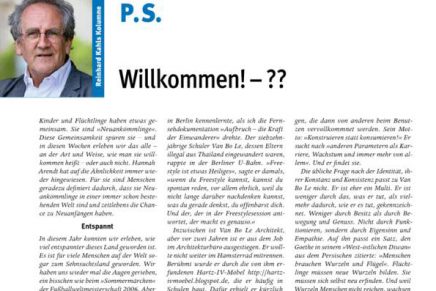 Wenn Sie den vollen Text lesen wollen, klicken Sie bitte hier:Beitrag als PDF Dokument Reinhard Kahls Kolumne P.S. Willkommen!