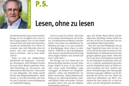 Wenn Sie den vollen Text lesen wollen, klicken Sie bitte hier:Beitrag als PDF Dokument Reinhard Kahls Kolumne P.S. Lesen, ohne
