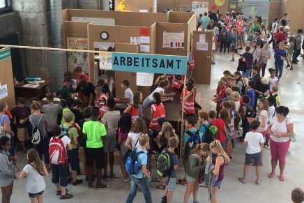 Die Kinder am 3. Tag bei Mini-München. Sie sind präsent. Sie sind wirklich da, mit dem Körper und – sagen wir – mit der Seele. Sie sind nicht in dem für sie in der Schule üblichen und die Gesellschaft mehr und mehr dominierenden Status des rasenden „Um-zu“. Dieses ewige Hase und Igel Spiel, bei dem man nie richtig ankommt. Vielleicht ist das die starke Gravitation in Mini-München: Etwas Folgenreiches machen. In diesem Kosmos gebraucht zu werden. Seinen Platz zu haben. Die Chance einfach ganz da zu sein, sein Ding zu finden oder immer weiter zu suchen und auszuprobieren.