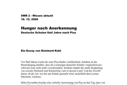 Reinhard Kahl NDR Kultur – Pisa-Masochismus? Pisa war in Deutschland der BSE-Fall für die Bildung. BSE heißt hier: Bildungs-Skandal-Erreger. Die Aufregung