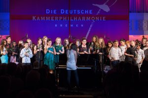 Es ist übrigens eine Stadtteil aus Betonburgen mit überwiegend Hartz-IV-Empfängern. Man erlebt in dieser Schule die Proben für die „Melodie des Lebens“, die sich über ein Vierteljahr hinziehen und in der Kinder und Jugendliche hinreißende, tatsächlich Tränen rührende Lieder entwickeln um sie mit den Musikern des Orchesters vorzutragen, das man in Asien zu den zehn besten der Welt zählt – und nicht nur dort. Die Seele der „Musik des Lebens“ ist Mark Scheibe, der am Abend darauf in unserer Scheune um 21 Uhr singt und sich am Klavier begleitet.
