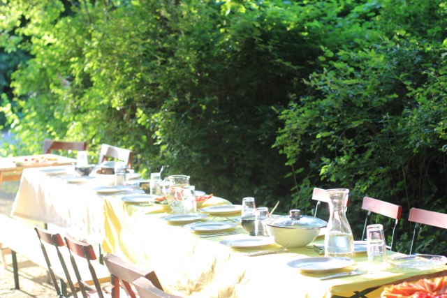 Das sind Ausschnitte eines wunderbaren Abends. Wir sind auf den Geschmack gekommen, wollen solche Abende wiederholen und die Tafel mit Freunden und Fremden empfehlen. Vorgenommen haben wir uns an diesem Abend, dass es am 17. Juni 2018 oder an einem anderen Tag in Sonnenwendnähe nächstes Jahr im Wendland wenigstens 100 Tafeln geben wird. Mit dem Probesitzen fangen wir bald an.